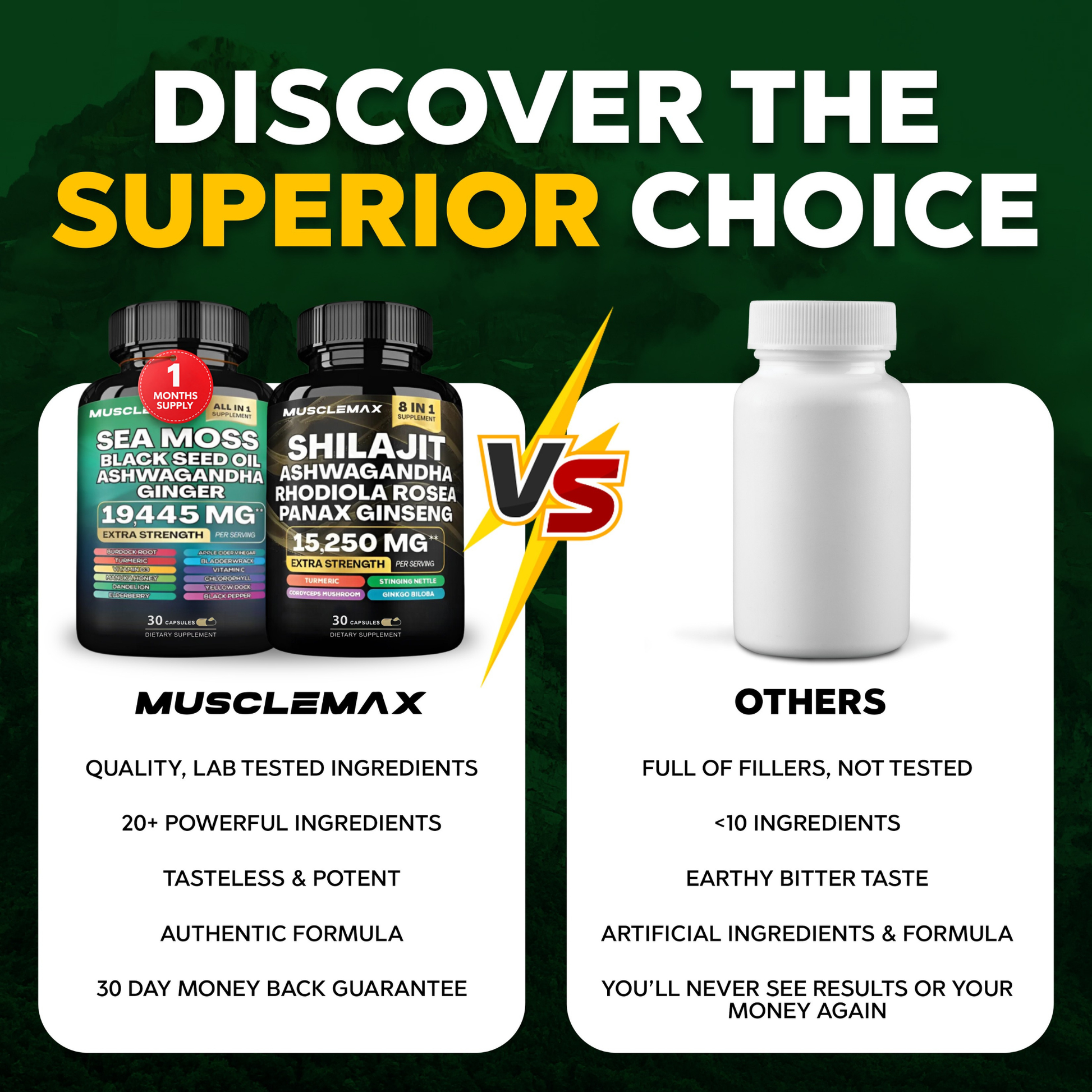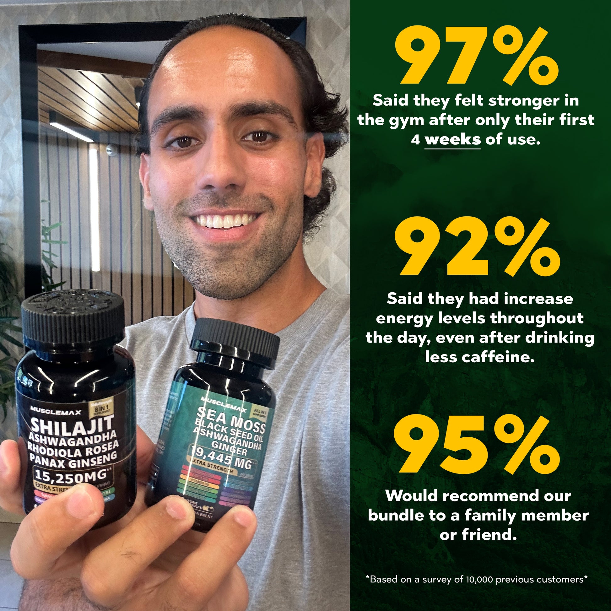 Sure, regular Irish sea moss and shilajit improve your overall health. But, when you combine the best of these two and add more health-promoting ingredients, you get MuscleMax's bundle.